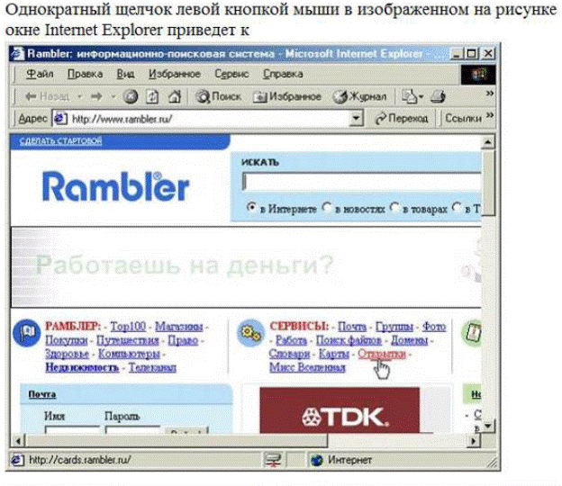 R нажать кнопку «Найти» £ набрать ключевые слова в адресной строке окна броузера £ нажать кнопку «Поиск» на панели инструментов £ нажать кнопку «Переход» на панели инструментов £ ыбрать любое подчеркнутое ключевое слово из предлагаемого списка 22. Задание {{ 23 }} ТЗ № 23 выбери 2 правельных ответа Концепция системы защиты от информационного оружия должна включать R механизмы защиты пользователей от различных типов и уровней угроз для национальной информационной инфраструктуры R процедуры оценки уровня и особенностей атаки против национальной инфраструктуры в целом и отдельных пользователей £ процедуры нанесения атак с помощью информационного оружия £ средства нанесения контратаки с помощью информационного оружия £ признаки, сигнализирующие о возможном нападении 23. Задание {{ 24 }} ТЗ № 24 Укажите правильный адрес в сети класса С для широковещательных сообщений R 192.168.0.255 £ 192.168.0.0 £ 192.168.0.127 £ 192.168.0.1 24. Задание {{ 25 }} ТЗ № 25 СУБД это... R Система управления базами данных £ Система удаления блокированных данных £ истема управления большими данными £ Свойства удаленной базы данных 25. Задание {{ 26 }} ТЗ № 26 выбери 2 правильных ответа В коммуникативных и управленческих функциях информации НЕ отражены такие проблемы, как... R «ЭВМ - динамическая система» £ «человек - ЭВМ» £ «ЭВМ - ЭВМ» R «человек - человек» 26. Задание {{ 27 }} ТЗ № 27 Хронология становления информатики не включает £ «Золотой век науки» R эпоху передвижников £ электро-механический этап £ механический этап 27. Задание {{ 28 }} ТЗ № 28 Укажите содержательную модель: £ иммитационная модель £ модель "черный ящик" R уравнений, описывающие физические процессы, происходящие в недрах Земли £ милицейский протокол 28. Задание {{ 29 }} ТЗ № 29 Как называется тестирование, при котором разработчик теста имеет доступ к исходному коду и может писать код, который связан с библиотеками тестируемого ПО: £ Регрессионное тестирование £ Системное тестирование £ Тестирование «черного ящика» R Тестирование «белого ящика» 29. Задание {{ 30 }} ТЗ № 30 Что понимается под жизненным циклом программного средства: £ только период его эксплуатации £ только период его разработки £ период его разработки и тестирования, до сдачи программного средства в эксплуатацию R весь период его разработки и эксплуатации 30. Задание {{ 31 }} ТЗ № 31 Переход к последней или предыдущей гиперссылке на каждом слайде осуществляется посредством нажатия клавиши: R Shift+Tab £ Tab £ Shift+Enter £ Alt+Tab 31. Задание {{ 32 }} ТЗ № 32 выберите все верные утверждения Результатом действия компьютерных вирусов могут быть три ситуации - R вибрация монитора R искажение содержания документов £ наступление быстрой утомляемости пользователя вследствие специфических цветовых и анимационных эффектов, вызванных программой-вирусом £ застревание клавиш на клавиатуре R выход из строя некоторых устройств, например, винчестера 32. Задание {{ 33 }} ТЗ № 33 Характеристики структурного программирования: £ Невозможность использования циклов R модульность £ спользование только объектов и структур данных £ неограниченное использование глобальных переменных 33. Задание {{ 34 }} ТЗ № 34 Любая, когда-либо существовавшая вычислительная система обязательно £ винчестер (жесткий диск) R устройство ввода-вывода R центральный процессор R оперативную память £ накопитель на гибких дисках 34. Задание {{ 35 }} ТЗ № 35 За