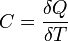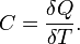 Изменение полной энергии системы в квазистатическом процессе равно количеству теплоты Q, сообщённому системе, в сумме с изменением энергии, связанной сколичеством вещества N при химическом потенциале μ, и работы A '[3], совершённой над системой внешними силами и полями, за вычетом работы A, совершённой самой системой против внешних сил Δ U = Q − A + μΔ N + A '. Теплоёмкость тела (обычно обозначается латинской буквой C) — физическая величина, определяющая отношение бесконечно малого количества теплоты δ Q, полученного телом, к соответствующему приращению его температуры δ T: