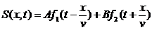 Здесь А и В - произвольные константы, а f1 и f2 - произвольные дважды дифференцируемые функции. Первое слагаемое описывает волну, распространяющуюся слева направо, второе - встречную волну.