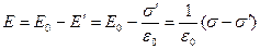 Итак, в рассматриваемом случае относительная диэлектрическая проницаемость e показывает, во сколько раз ослабляется поле за счет диэлектрика. Умножив (16.18) на e 0 e, получим электрическое смещение внутри пластины D = e 0 e E = e 0 E 0. (16.19) Таким образом, внутри пластины электрическое смещение равно напряженности поля свободных зарядов, умноженной на e 0, т. е. совпадает с электрическим смещением внешнего поля D 0. Вне пластины e = 1 и D также равно e 0 E 0. Чтобы найти s ’, выразим в (16.18) Е и Е 0 через плотности зарядов