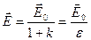 Вне диэлектрика Е = Е 0. Поляризация диэлектрика обусловлена полем (16.17). Поскольку оно перпендикулярно к поверхности пластины, Е n = Е. Кроме того, в соответствии с (15.12) s ’ = ke 0 E. Подставляя это значение в формулу (16.17), получаем E = E 0 – k E откуда