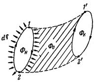 каждым участком (в пределах каждой малой площадки d l d s магнитную индукцию можно считать постоянной). Если вектор В образует с нормалью к контуру угол a, отличный от нуля, направление силы составит с направлением перемещения также угол a (f перпендикулярна к В) и d A = f cos a d s = iB n l d s, где B n = В cos a – составляющая вектора В по направлению нормали к площадке l d s. Произведение B n l d s есть d Ф – поток, пересекаемый проводником. Таким образом и в этом случае мы приходим к формуле (49.1). Заметим, что работа (49.1) совершается не за счет магнитного поля (сила Лоренца работы над зарядами не совершает), а за счет источника, поддерживающего ток в контуре. Далее будет показано, что при изменениях потока магнитной индукции, пронизывающего контур, в этом контуре возникает э. д. с. индукции