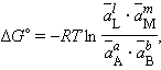 Для определения величины ΔG в условиях, отличных от стандартных, используют уравнение зависимости изобарно-изотермического потенциала от концентрации и температуры. Используя соотношения (4.1) и (4.2), получаем: