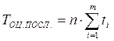 Если детали запускаются в производстве поштучно, то все технологические операции на каждой детали могут быть выполнены только последовательно. При этом цикл обработки одной детали будет равен сумме продолжительностей всех операций. Реально на предприятии изготовление деталей осуществляется не штучно, а различными партиями и в зависимости от возможностей и целей обработка партиями деталей может осуществляться тремя способами: - последовательно; - параллельно последовательно; - параллельно. При последовательном способе вся партия деталей транспортируется с одной операции (рабочего места) на другую только целиком, т.е. после окончания обработки всех деталей входящих в данную партию. Длительность цикла при последовательном способе вычисляется по формуле: