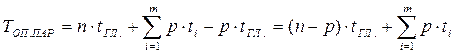 р – размер передаточной партии; t1 и t2 – длительность 1 и 2 операций соответственно; t1 – выигрыш во времени по сравнению с последовательным методом.