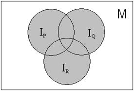 Можно рассматривать и обратную задачу: «Зная область истинности предиката, полученного в результате применения логических операций к некоторым предикатам, записать этот предикат». Пример 4. Записать предикат, полученный в результате логических операций над предикатами Р (х), Q (х) и R (х), область истинности которого изображена серой частью рисунка: