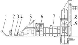 Машины для формирования и упаковки каучука в брикеты Брикетировочный пресс (рис.11.4.) предназначен для прессования крошки каучука в бр Рис. 11.4. Брикетировочный пресс: 1 – станина; 2 верхняя траверса; 3 крышка; 4 гидропривод крышки; 5 – камера прессования; 6 – гидравлический механизм прессования Схема упаковки каучука в брикеты включает брикетировочный пресс, передаточный стол, ленточный конвейер с металлодетектором, оберточную и упаковочную машину, мешкозашивательную машину (рис. 11