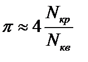 2) Исходя из вероятностных представлений, вычислить число Рассмотрим квадрат со стороной, равной единице, и четверть круга в нем (рисунок 18.2). Тогда геометрическая вероятность попадания случайной величины в четверть круга, площадь которого