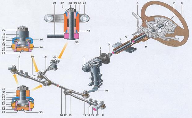Схема рулевого управления на автомобиле Волга ГАЗ 31105.
