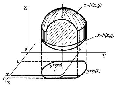 Теорема 1. Пусть область V ограничена снизу и сверху поверхностями