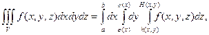позволяющая свести вычисление тройного интеграл к вычислению двойного интеграла от определенного интеграла (короче, к вычислению повторного интеграла). Интеграл, стоящий в правой части равенства, обычно записывают в виде: