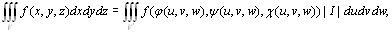 где x = φ(u, v, w), y = ψ(u, v, w), z = χ(u, v, w),