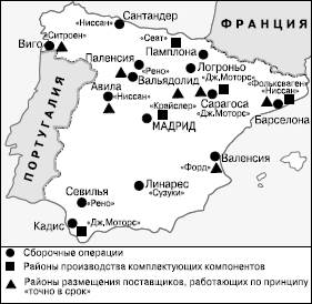 Рис. 28. Автомобильные заводы Испании (по А. В. Федорченко) В Центрально-Восточной Европе автомобилестроение как отрасль сложилась в основном уже после Второй мировой войны. Заводы легковых, грузовых автомобилей и автобусов были построены в Польше, Чехословакии, Румынии, Венгрии, Югославии. В период существования СЭВ между ними осуществлялась специализация и были налажены кооперационные связи; в еще большей мере это относилось к их связям с автомобильными заводами СССР. Однако общие масштабы производства в большинстве стран не достигли того уровня, который мог бы обеспечить максимальную его эффективность. Достаточно сказать, что в 2006 г. в Словении было выпущено 150 тыс. автомобилей, в Венгрии – 190, в Румынии – 215, в Словакии – 300 тыс., а в Сербии всего 10 тыс. И только в Польше и Чехии выпуск автомобилей в последние годы вырос, достигнув соответственно 715 и 850 тыс. штук. Но нельзя не отметить и того, что в начале XX1 в. автомобильная промышленность стран Центрально-Восточной Европы демонстрирует значительный рост. Общее производство автомобилей уже приближается к 2,5 млн (по сравнению с 900 тыс. в 1990 г.). Впрочем, нужно учитывать, что этот бум объясняется почти исключительно привлечением иностранного капитала. Так, в Польше производство легковых автомобилей было налажено итальянским ФИАТом, южнокорейской «Дэу», американским «Дженерал Моторс», немецким «Фольксвагеном», а грузовиков – шведской «Вольво». В новые автомобильные заводы Венгрии вложили капиталы «Фольксваген», «Форд», принадлежащая «Дженерал Моторс» немецкая фирма «Опель», японская «Судзуки». Под контроль «Фольксвагена» перешла и знаменитая чешская «Шкода».