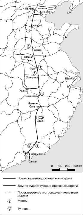 Рис. 105. Новая железнодорожная магистраль Пекин – Сянган