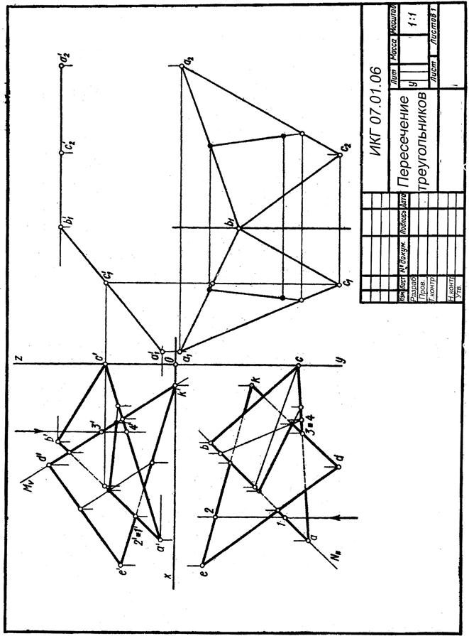 -41- Пересечение треугольников, видимость сторон, определение натуральной величины ------------------------------------------------------------------------------------------------------------------------