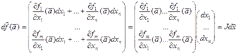 Матрица (Свойства матрицы Якоби даны в приложении к этому билету, в конце его.) Перейдем к вопросу о том, что будет в случае зависимых переменных Производная сложной функции. Инвариантность формы первого дифференциала. Допустим, что В определении дифференцируемости можно доопределить функции Рассмотрим теперь случай, когда Равенства (6) и (7) дают правила вычисления производных сложных функций. Следствие. Следствием этих правил является инвариантность форм первого дифференциала. Именно, пусть Это означает, что как в случае независимых переменных