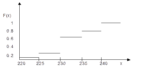 В данном примере случайная величина Х распределена с шагом h=5. Рассчитаем эмпирическую функцию распределения в виде «нарастающей относительной частоты» (Таблица 4). Таблица 4 Расчёт эмпирической функции распределения