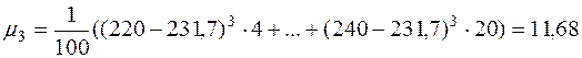 2) Найдём числовые характеристики вариационного ряда, используя Таблицу 3. Средняя арифметическая (9):