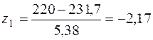3)Проведём статистическую проверку гипотезы о нормальном распределении. Нормальный закон распределения имеет два параметра (r=2): математическое ожидание и среднее квадратическое отклонение. Для расчёта теоретических частот - по нормированным значениям случайной величины Z находим значения