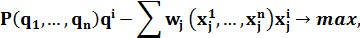Олигополия - когда все конкурирующие фирмы могут влиять на цены продукции и затраты. Прибыль каждой фирмы зависит от экономических решений других фирм, поэтому необходимо определить оптимальное решение олигополиста по объему выпуска и по цене товара. Введем следующие обозначения. - m - число олигополистов выпускающих один и тот же товар (i =1,…, n), - n - виды затрат (j =1,…, m), - - P - цена товара P=P - q - объём выпуска, - w - цена затрат - x - объём затрат.