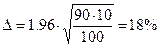 В использованном примере при доверительной вероятности Р=0,95 и t=1,96. Видоизменяя формулу, например, можно рассчитать необходимое число наблюдений для получения определенного размера неточности: В условиях предыдущей задачи найти число наблюдений, чтобы ошибка не превышала 4 %