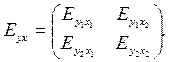 Пример 1.1.2. Найти коэффициенты эластичности по х и по у функции z= xy в точке (2;3). Согласно формулам (1.1.2) имеем Еzx (х, у) = x (ln z)' x = x (y ln x)' x= у, Ezy (x, y) = y (ln z)' y = y (y ln x)' y = у ln х. Следовательно, Еzx (2,3) =3, Еzy (2;3) = 3ln 2. Формулы (1.1.2) полностью аналогичны формулам, которые использовались при выводе свойств 1 – 3 эластичности в 1.1.2. Поэтому первые три свойства эластичности справедливы и в случае функции нескольких переменных. Четвертое и пятое свойства также сохраняются, но формы их записи становятся сложнее. Остановимся подробнее на этих свойствах. Свойство 4 '. Для функций z = f (x, у), х = j (t) и у = y (t) эластичность z no t в точке t 0 находится по формуле Еzt = ЕzxЕxt + ЕzyЕyt, (1.1.3) где Еzx, Еzy – эластичности z по х и у в точке (j (t 0), y (t 0)), а Еxt, Еyt – эластичности х и у по t в точке t 0. Для любой пары функций у 1= f 1(х 1, х 2 ), y 2 =f 2 (x 1, x 2 ) имеем 4 коэффициента эластичности, которые запишем в матрицу размера 2х2: