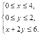 Метод идеальной точки. Можно рекомендовать еще метод идеальной точки, который состоит в отыскании среди паретовских решений ближайшего к точке утопии, задаваемой ЛПР. Формулируется цель в виде желаемых значений показателей, и часто выбирается сочетание наилучших значений всех критериев F1*, F2*,… (обычно эта точка не реализуется при заданных ограничениях, поэтому ее и называют точкой утопии). Ближайшим считается решение х, обращающее в минимум сумму квадратов отклонений значений всех критериев Fi(х) от их наилучших значений F1*, F2*,… Пример 2.9.1. Пусть множество допустимых планов описывается системой неравенств: