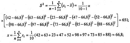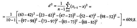 При проверке гипотез о равенстве средних вначале необходимо проверить гипотезу о независимости одинаково нормально распре- деленных случайных величин в выборке (х1, х2,..., хn) при неизвес- тных параметрах М (х) и D(x). Выборку записывают в том же порядке, в каком записывались результаты наблюдений, например, (42, 63, 23, 47, 52, 98, 97, 73, 85, 88). По имеющейся выборке вычисляем D(x) двумя способами: