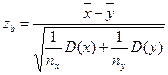 1. Проверка гипотезы о равенстве средних двух выборок, сделанных из нормально распределенной совокупности с известной величиной дисперсии D(х) и D(y), при nx>30 и ny>30 осуществляется сравнением статистики zb равной