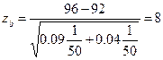 Пример. При испытании двух типов фильтров для очистки воздуха в объемах nx= ny= 50 штук получено среднее значение чистоты воздуха х = 92%, у = 96%. Проверить, является ли рас- хождение значений х и у случайными, если известны D(x)= 0,09%; D(y) = 0,04%.