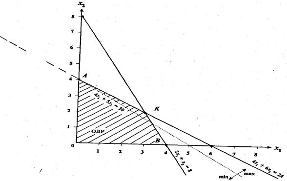 при условиях 2х, +х ≤ 8; 4 x 1 + 6 х 2 ≤ 24; x1 ≥ 0, х2 ≥ 0.