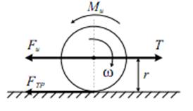Рис. 6.20 Под действием силы T тело вращается по часовой стрелке со скоростью ω. Силами сопротивления здесь являются инерционная сила F и и сила трения FТР. Составим уравнение равновесия указанных выше сил: