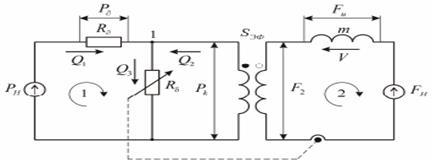 где SЭФ - эффективная площадь. Используя метод электроаналогии, перейдем от конструктивной схемы к эквивалентной электрической схеме, сохраняя при этом обозначения физических величин конструктивной схемы (рис.6.37).