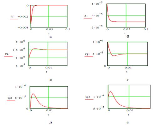 Результаты моделирования гидростатических направляющих представлены в виде графиков, которые показывают реакцию системы на внешнее усилие FH= 3×104H (рис. 6.40)