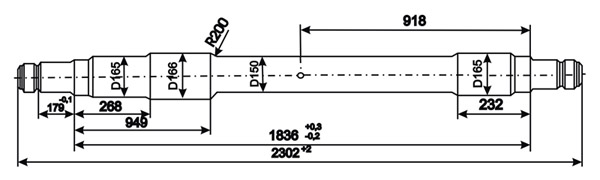 Рис. 6.12. Ось подрезиненной колесной пары На средней части оси имеется керн глубиной 2 мм, относительно которого по специальным шаблонам определяются места расположения на оси того или иного элемента колесной пары при напрессовке