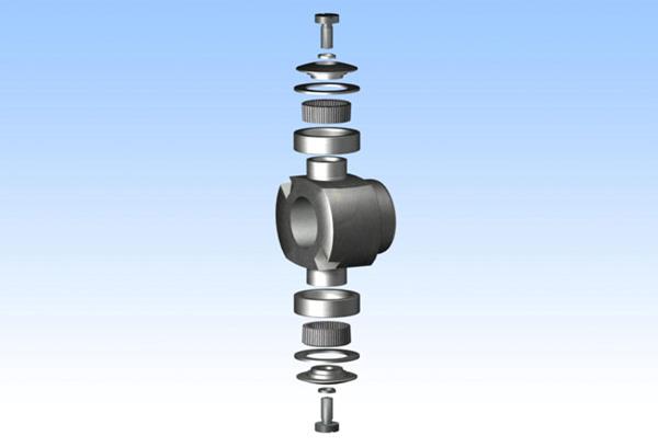 Каждая цапфа на торце имеет гнездо под ножку грибовидного колпачка и уходящее вглубь отверстие с резьбой под болт крепления колпачка. Грибовидные колпачки служат для закрепления игольчатых подшипников на цапфах. Наружная поверхность колпачка имеет сферическую форму. Вилка представляет собой открытый цилиндр с фланцем. По образующей цилиндра расположены два полуовальных выреза, в которых размещают ролики колпачка. Места упора роликов в боковые кромки вырезов, где осуществляется передача усилия, наплавляют специальным твердым сплавом для повышения износостойкости и шлифуют.