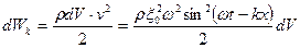 где r - плотность упругой среды, v – скорость всех точек выделенного нами объема. Скорость колебательного движения может быть найдена как производная от смещения по времени: Тогда кинетическая энергия выделенного объема будет равна: