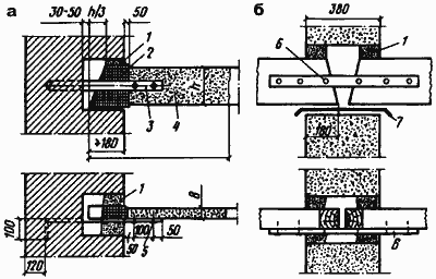 Рисунок 7. Опирание деревянных балок на каменные стены. а - одной балки;