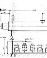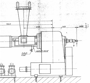 2 – цилиндр горизонтальный, 3 – червяк, 4 – головка шприц-машины, 5 – электродвигатель, 6 – вентилятор, 7 – передача.