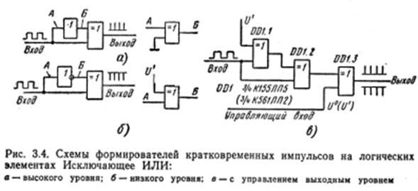 Рис. 1.50. Формирователи импульсов на основе интегрирующих цепей