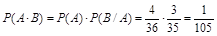 Теорема 2 (о сумме двух произвольных событий). Вероятность суммы двух любых событий равна сумме вероятностей этих событий без вероятности их совместного осуществления, т.е. Пример: Бросаем две игральные кости. Вычислить вероятность выпадения хотя бы одной «шестерки». Решение: А – выпадение «шестерки» на первой кости; В – выпадение «шестерки» на второй кости. Тогда Часто возникает ситуация, когда вероятность появления некоторого события В зависит от того, произошло или нет ранее событие А. в таком случае говорят, что событие В зависит от события А, а вероятность появления события В называют условной вероятностью и обозначают Пример: В урне 10 белых и 5 черных шаров. Вынимают один за другим 2 шара. Какова вероятность того, что второй шар окажется белым? Решение: Событие А – первый шар белый; событие В – второй шар белый. Тогда Теорема 3 (о произведении двух произвольных событий). Вероятность произведения двух любых событий равна произведению вероятности одного из этих событий на условную вероятность другого события при условии, что первое событие произошло, т.е. Пример: Из колоды в 36 карт наугад вынимают две карты. Вычислить вероятность того, что вынуты две дамы. Решение: А – первая карта – дама; В – вторая карта – дама. Тогда Если Теорема 4 (о произведении независимых событий). Вероятность произведения независимых событий равна произведению вероятностей этих событий, т.е. Пример: В одной урне – 5 красных шаров. В другой – 2 красных и 4 белых. Из каждой урны берут по одному шару. Какова вероятность, что оба они окажутся красными? Решение: А – шар из первой урны – красный; В – шар из второй урны – красный. События А и В – независимые. Тогда Теорема 5 (о противоположном событии) Пример: Вероятность студента сдать зачет равна 0,76. Какова вероятность того, что студент не сдаст зачет? Решение: Событие А – студент сдал зачет. Тогда