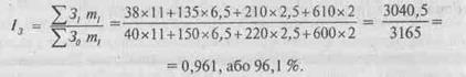 Аналогічно можна побудувати і середній гармонічний індекс, тим більше, що іноді він має практичне значення. Індекс злочинності у вигляді середнього гармонічного індексу з вагами звітного періоду побудовано відповідно до співвідношення індивідуальних індексів (і^=3):3д, звідси Зд=3,:і^):
