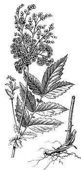 Лабазник вязолистный (Filipendula ulmaria) (рис. 94, I) – высокий (до 2 м) травянистый многолетник. Стебли прямые, голые. Листья прерывисто перисторассеченными с 2 – 3 (5) парами ланцетных или продолговато-яйцевидных, надрезаннопильчатых по краю, сверху зеленых, снизу беловойлочных листочков. Между листочками развиты мелкие, дважды пильчатые вставочные дольки. Соцветие многоцветковое, метельчатое. Цветки мелкие, желтовато-белые, пятичленные, душистые. Формула цветка лабазника вязолистного: *Ca(5)Co5A∞G 6-10. Плод – многолистовка из 6 – 10 невскрывающихся спи-рально закрученных листовок. Высушенные соцветия лабазника вязолистного исполь-зуют в качестве лекарственного средства. К этому подсемейству также относится рябинник, или спирея рябинолистная, который культивируется в парках и садах. Подсемейство шиповниковые (розовые) (Rosoideae) (рис. 95). Кустарники и травы. Цветоложе от конического (роды: лапчатка, гравилат, земляника, малина,) до бокальчатого (род шиповник). Чашечка с подчашием (лапчатка, земляника). Плодолистиков много или иногда 1. Плоды сложные - семянка, орешек, костянка. Из этого подсемейства земляника лесная, многие виды шиповника, лапчатка серебристая, л. прямостоячая, кровохлебка лекарственная (95, б), малина обыкновенная относятся к фармакопейным растениям. Малина обыкновенная (Rubus idaeus) (рис. 95, г) – кустарник с многолетним корневищем, с двулетними надземными прямостоячими побегами высотой 50 - 180 см. Побеги первого года зеленые, бесплодные, с загнутыми вниз шипиками – эмергенцами, зеленые с сизым налетом. Присутствие эмергенцев на стеблях является одним из признаков рода малины. Побеги второго года плодоносящие, слегка одревесневшие, желтовато-бурые, ветви их, несущие листья – зеленые. Шипики только на боковых зеленых веточка. Листья на побегах первого года очередные непарноперистосложные, верхний их листочек на черешке, а остальные – сидячие. У основания листьев находятся нитевидные прилистники, которые нижней частью приросли к черешку, свободными остаются только их узколанцетные кончики. Листья цветущих побегов тройчатые. Обращают внимание, что листья сверху зеленые, снизу же бело-войлочные, листочки яйцевидные, острые, неравнопильчатые по краю.