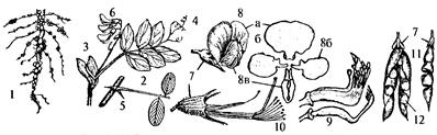 Рис. 100. Характерные признаки бобовых.