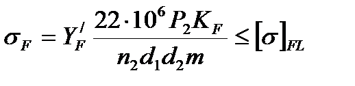 Основная ее цель – определение расчетных изгибных напряжений в зубьях колеса. Эти напряжения не должны превышать напряжений допускаемых. Расчетные формулы: