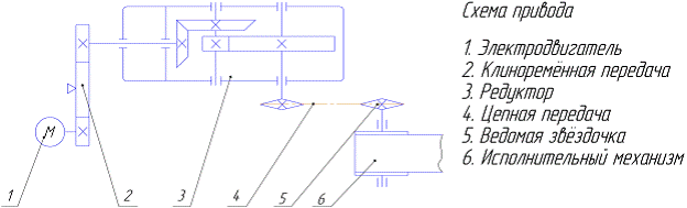 Рис. 1. Схема привода Таблица 1