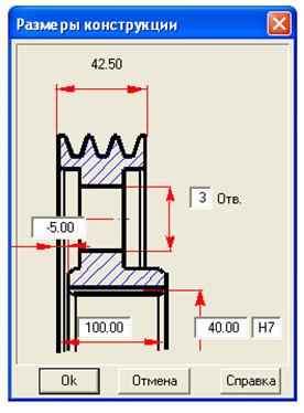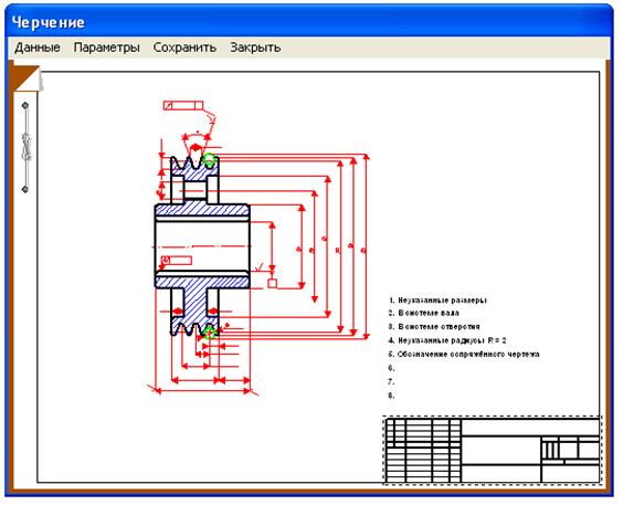 Рис. 5.20 Непосредственно генерация чертежа шкива осуществляется в модуле APM Graph. Система автоматически запускает данный модуль и генерирует в нем чертеж, после того как пользователь нажмет кнопку «Сохранить» в окне «Черчение» (рис. 5.17) и задаст имя файла шкива.