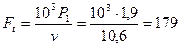 Сила натяжения ведущей ветви F1, Н:
