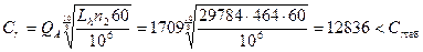 Вычисляем отношение осевой нагрузки к радиальной для каждого из подшипников: Эквивалентную радиальную нагрузку на подшипник В определяем по формуле, Н: Эквивалентную радиальную нагрузку на подшипник В определяем по формуле, Н: Наиболее нагруженным подшипником промежуточного вала является подшипник А. Определим динамическую грузоподъёмность Сr для наиболее нагруженного подшипника: