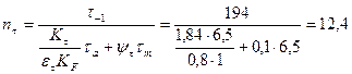 Эффективные коэффициенты концентрации напряжений: Коэффициенты, учитывающие масштабный фактор, Для шлифованных поверхностей коэффициент, учитывающий влияние качества обработки, Коэффициенты, учитывающие влияние асимметрии цикла напряжений на прочность вала при изгибе, Определяем для опасного сечения коэффициенты запаса выносливости по нормальным